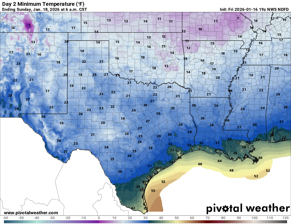 A cold front hit Central Texas, dropping temperatures from the 70s to the 20s by Sunday morning. Saturday will see morning lows around 30-40°F under clear skies and gusty north winds. Afternoon highs will only reach the 50s, significantly below normal for mid-January. Runners in the Spurs Austin International Half Marathon should dress warmly. The coldest air arrives Sunday, with lows possibly in the teens in isolated areas. For Martin Luther King Jr. Day, expect sunny but chilly weather, with lows in the 20s in the Hill Country and highs around mid-60s in Austin. Next week, rain is forecasted, potentially bringing much-needed moisture to the region.